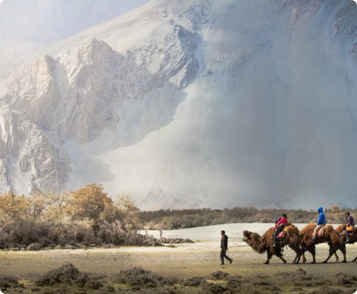 Drive to the white sand dunes of Hundar, where you will enjoy a double-humped camel ride